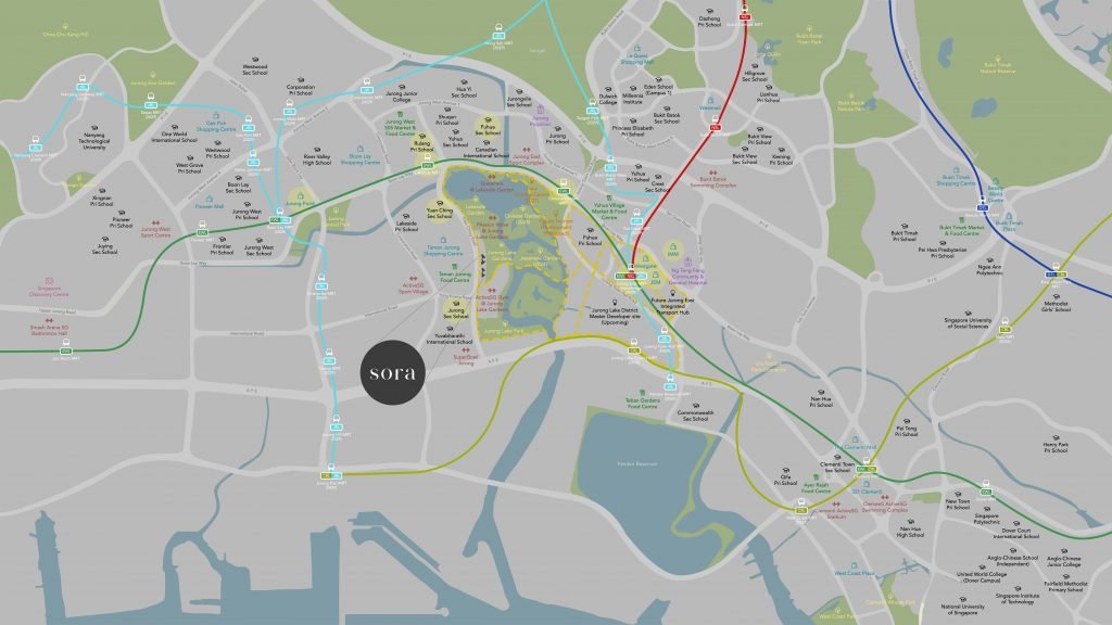 Sora is conveniently located near many good schools, including Rulang Primary School, River Valley High School, Nanyang Technological University of Singapore (NTU), National University of Singapore (NUS), and the Canadian International School, among many others.
